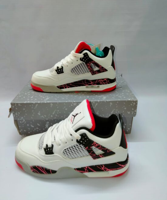 Air Jordan 4 Retro White Leather Pink Teal Crackle Black Red Accents